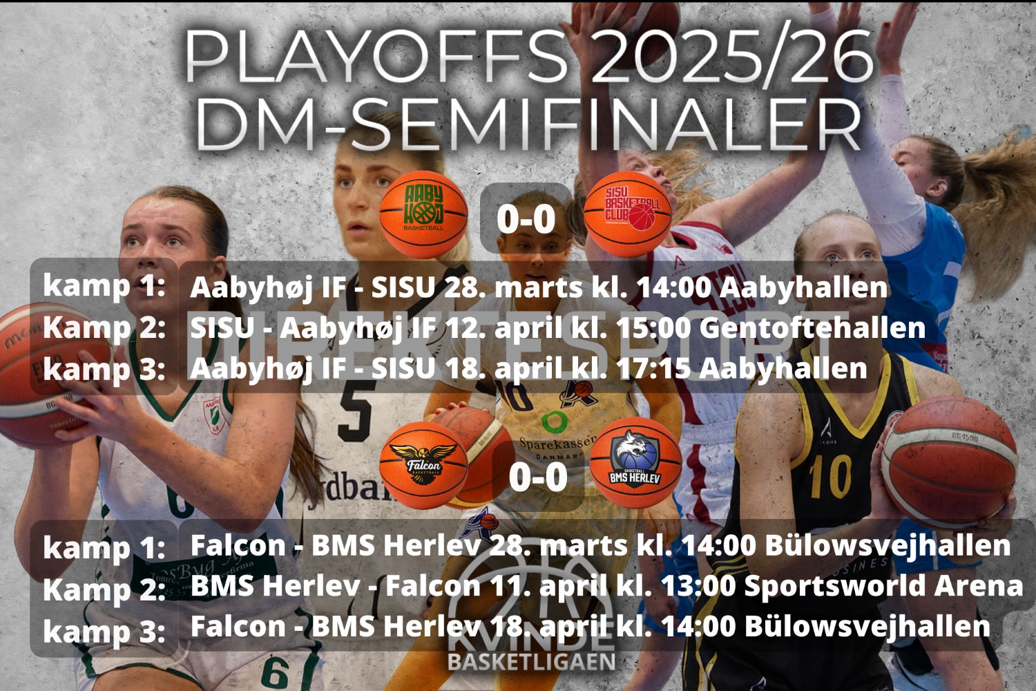 Falcon der vandt grundspillet, får fornøjelsen af BMS Herlev der sluttede på 4. pladsen mens Aabyhøj IF som endte nr. 2 skal spille mod SISU der blev nr. 3.